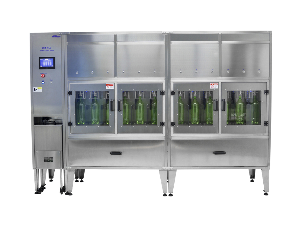 AT2E公司的SCT-PLC应力开裂测试仪是用于测试PET碳酸饮料瓶瓶底抗应力开裂的性能。通过在给定的环境条件下,将吹模成型的PET碳酸饮料瓶的瓶底浸泡在指定浓度的氢氧化钠溶液中,测试瓶底的开裂倾向,从而判断瓶子的抗应力开裂性能,并预测瓶子的长期性能。应力开裂测试仪