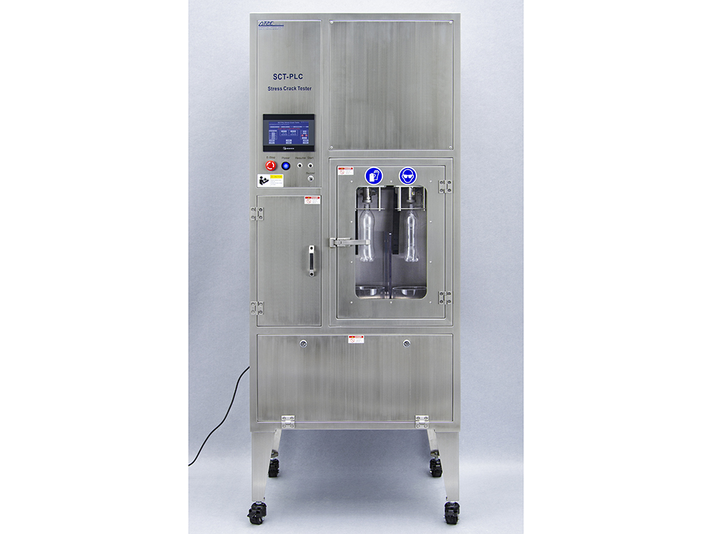 AT2E公司的SCT-PLC应力开裂测试仪是用于测试PET碳酸饮料瓶瓶底抗应力开裂的性能。通过在给定的环境条件下,将吹模成型的PET碳酸饮料瓶的瓶底浸泡在指定浓度的氢氧化钠溶液中,测试瓶底的开裂倾向,从而判断瓶子的抗应力开裂性能,并预测瓶子的长期性能。应力开裂测试仪